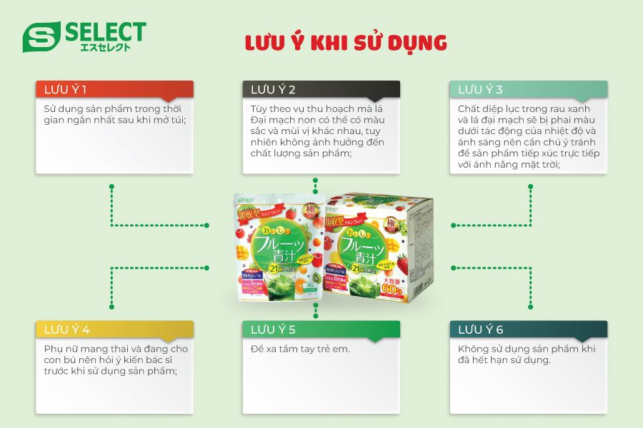 BỘT LÁ ĐẠI MẠCH NON, RAU XANH VÀ TRÁI CÂY S SELECT (HỘP 60 GÓI)