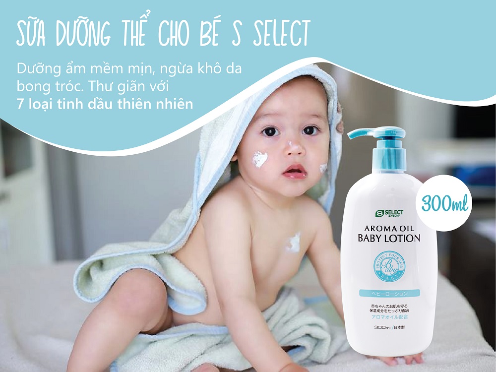 Sữa dưỡng thể tinh dầu thơm thiên nhiên cho bé S Select giúp dưỡng da toàn thân giúp tăng cường độ ẩm cho da, giúp ngăn ngừa và cải thiện tình trạng da thô ráp, bong tróc, sần sùi do thiếu ẩm, dưỡng da mềm mại, mịn màng.
