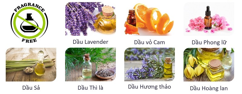 Tinh dầu thơm: Hương thơm từ các loại tinh dầu như oải hương và cam ngọt giúp mang lại cảm giác thư giãn và dễ chịu cho bé, giảm cảm giác khó chịu, kích thích.